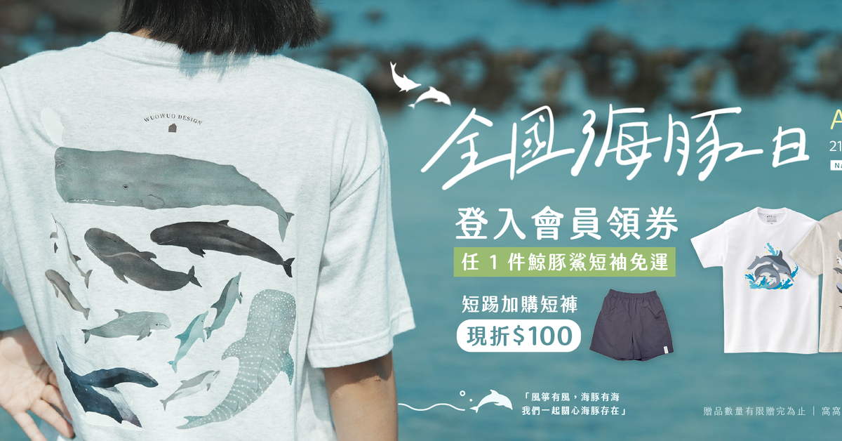 全國海豚日好評加碼!|4/21-4/26|登入會員領券,鯨豚鯊短袖任一件即免運